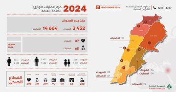 وأعلنت وزارة الصحة اللبنانية في تقريرها اليومي، مساء السبت، ارتفاع عددالضحايا إلى 3452 شهيداً، و14664 جريحاً منذ بداية العدوان على لبنان.