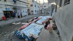 وقالت مصادر طبية من مستشفى كمال عدوان في جباليا شمال قطاع غزة، إن الكوادر الطبية في المستشفى تنتشل الشهداء من تحت الركام بمكان المجزرة بأيديهم لعدم وجود طواقم إنقاذ.