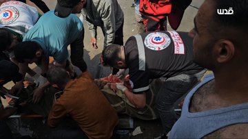 وسجلت عدة إصابات في قصف إسرائيلي على خيمة للنازحين بشارع الثلاثيني وآخر على حي التفاح بمدينة غزة.